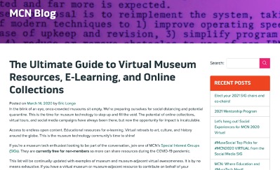 Since I don’t directly work for a museum, I thought it would be of interest to share with you how MCN shifted to an all virtual model for this year’s annual conference, which ended two weeks ago.