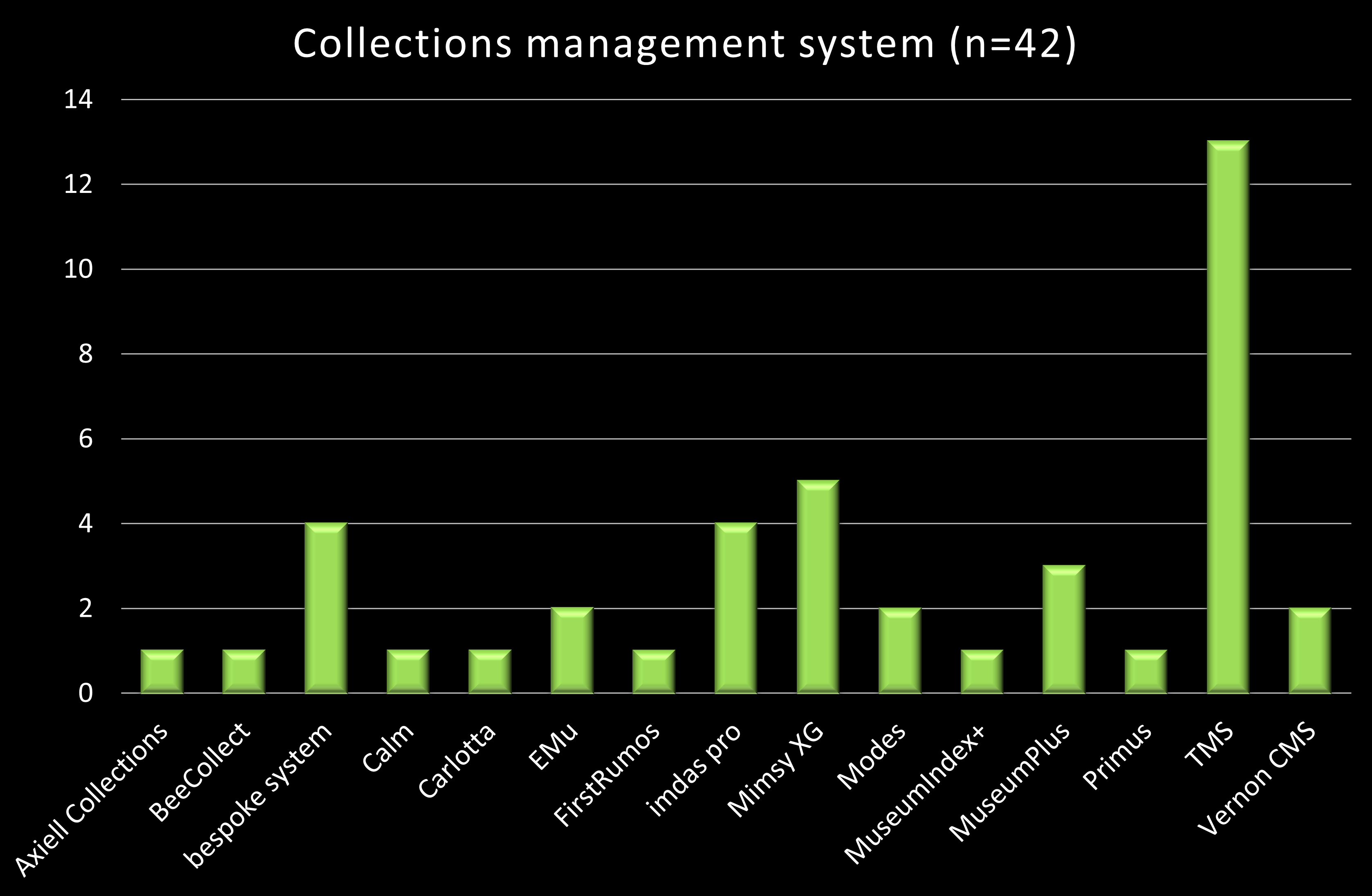 Chart showing the collections management systems use by museums which have responded to the survey
